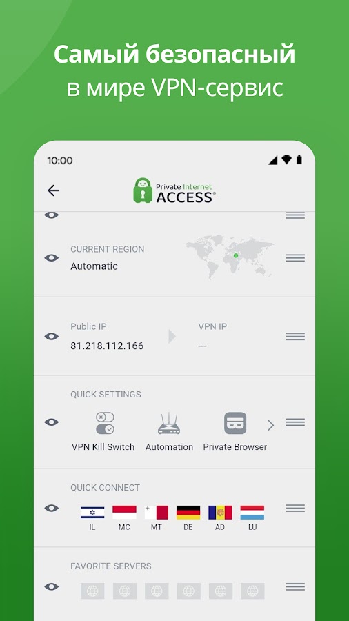🏆 Наслаждайтесь приватностью в Интернете с Private Internet Access® — это самый безопасный в мире VPN-сервис для Android.