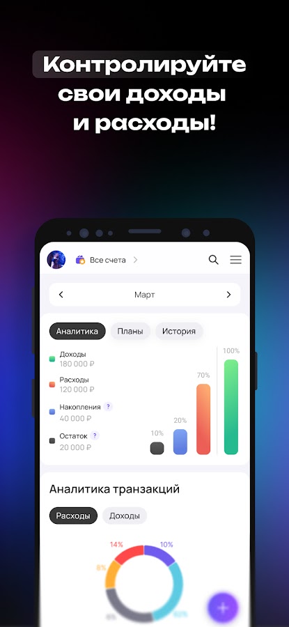 Удобный интерфейс для того, чтобы вести бюджет, финансы и учет расходов для достижения ваших целей.