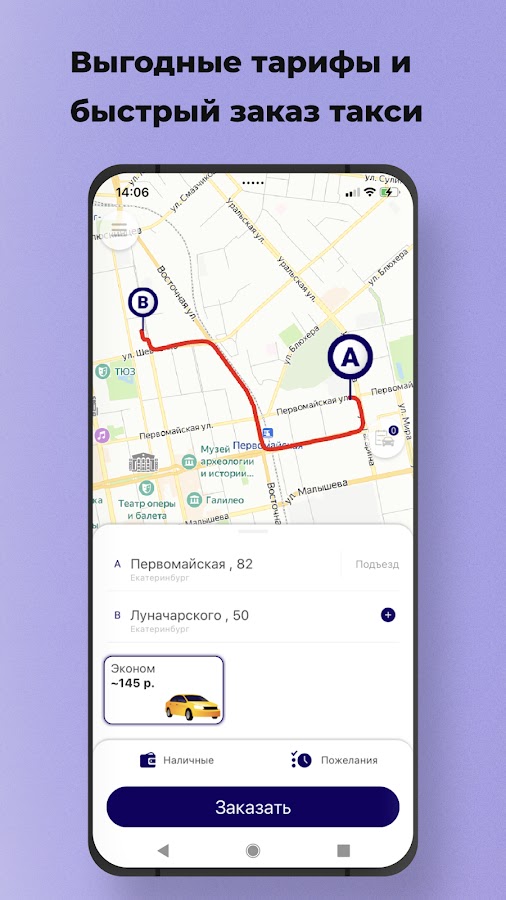 📱 Следите за поездкой на карте. Приложение сообщит время подачи, марку, цвет, номер машины, а также имя водителя.