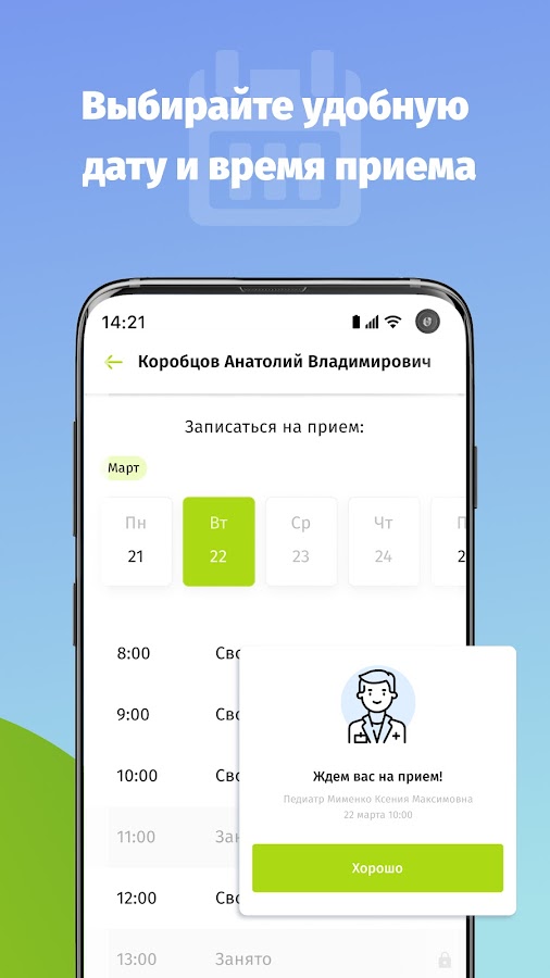 Записаться на прием к специалисту или на диагностику очень просто: выберите врача / направление диагностики, дату и время приема и нажмите «Записаться».