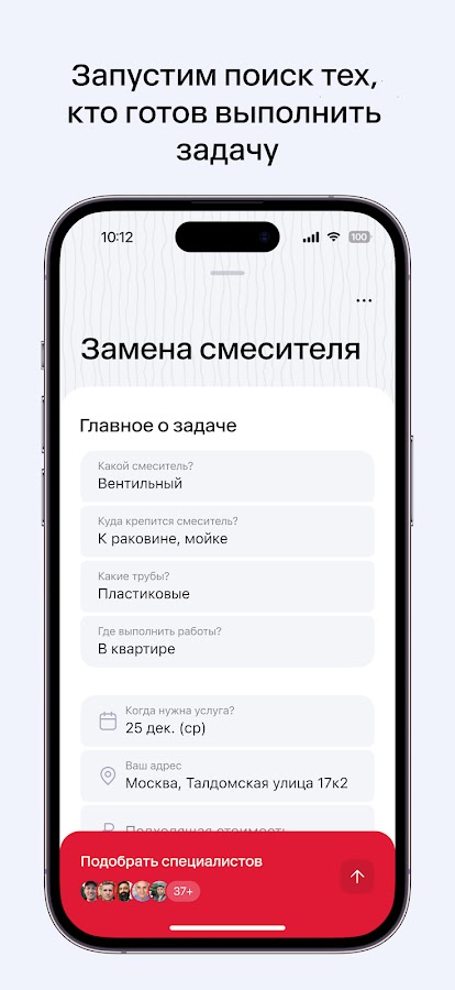 Получайте персональные предложения от специалистов по вашим задачам и объявлениям. В приложении специалисты сами находят вашу задачу и откликаются, предлагая свои услуги.