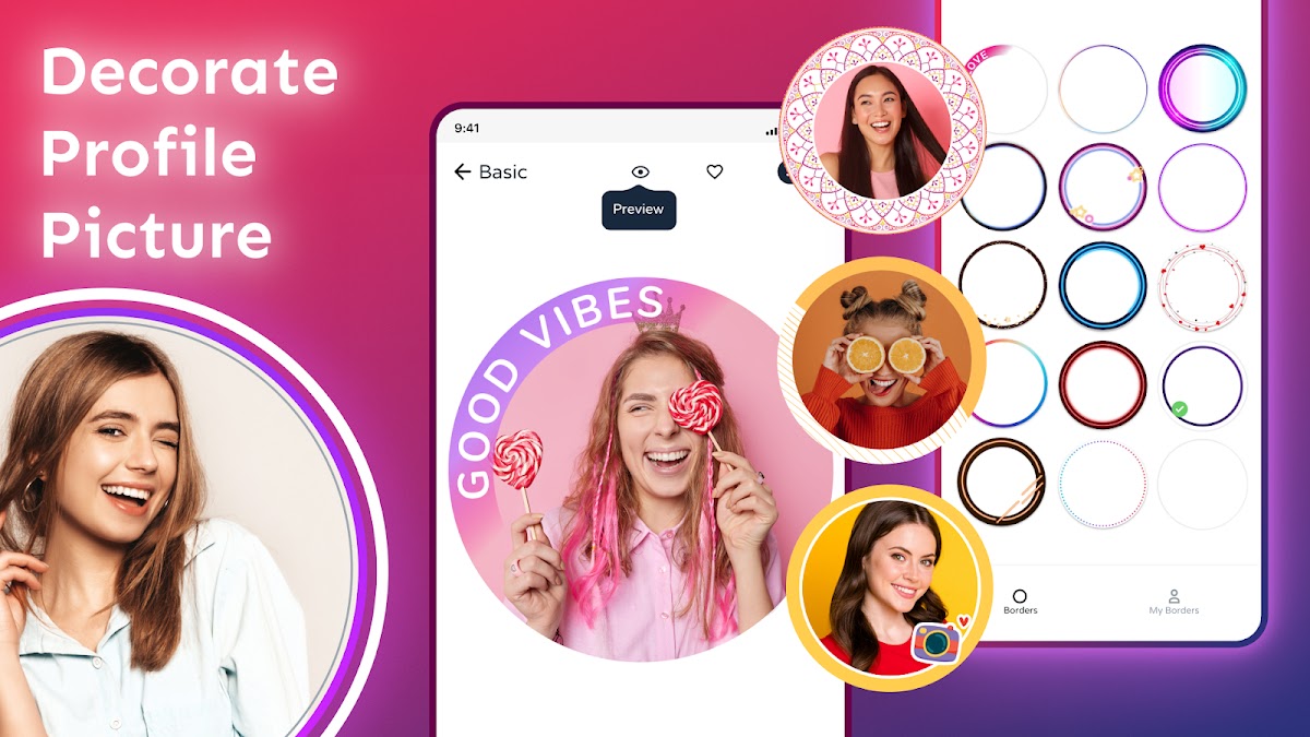 Создание самых привлекательных изображений профиля, а также красивых и оригинальных рамок и границ фото профиля! Привлеките больше людей к своему профилю, используя простое приложение — создатель границ фото. 😍😎