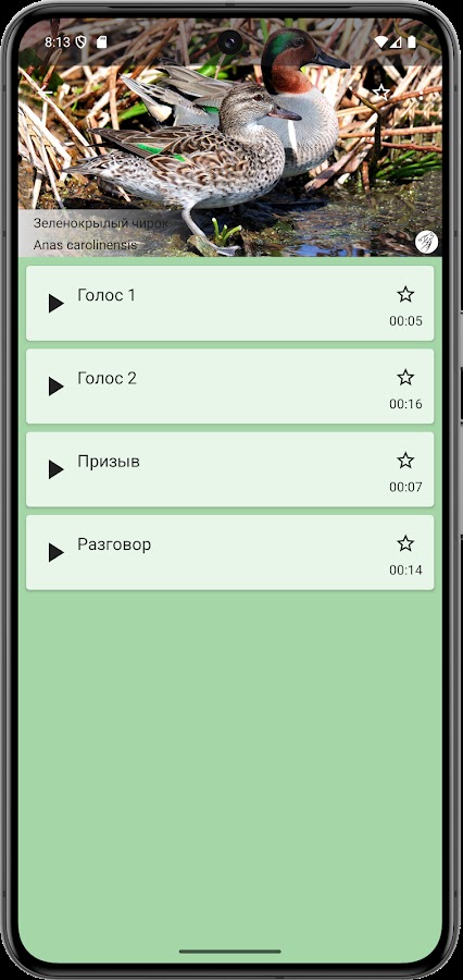 ✔ выберите категорию дичи, звуки которой вы хотите воспроизводить,
