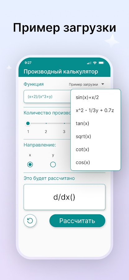 Скачайте приложение производная калькулятор dy/dx для Android бесплатно - последняя версия (1.0.6) уже доступна для установки на ваш телефон или планшет.