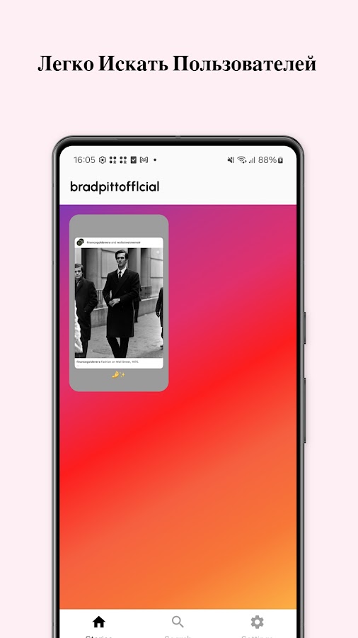 Удобный Интерфейс: Наслаждайтесь чистым и интуитивно понятным интерфейсом, который делает навигацию по профилям и историям максимально простой.