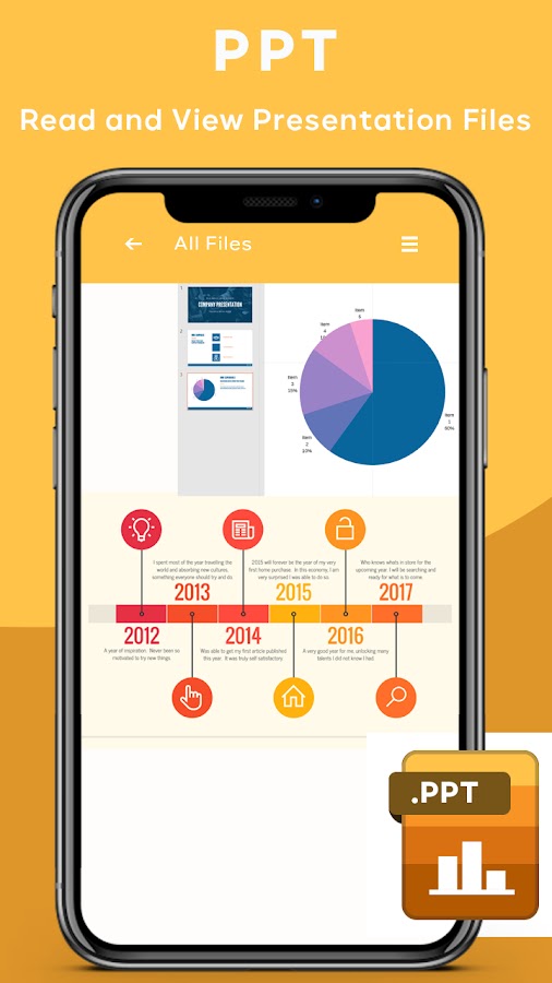 Все офисные файлы совместимы с этим приложением, документами Word, Excel и PPT. Наслаждайтесь всей функциональностью читателя документов у вас на ладони.