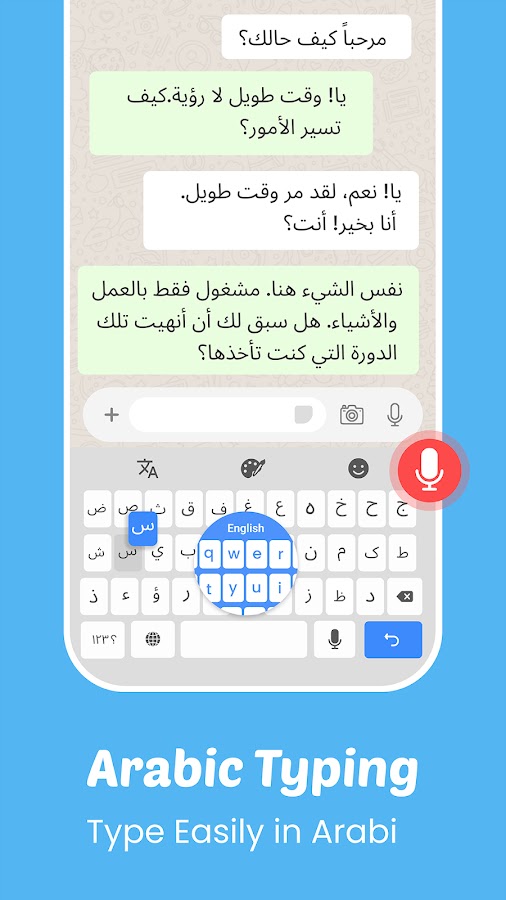 Легкая арабская клавиатура и набор текста на арабском языке — это уникальная клавиатура для изучения арабского языка, письма и общения. его автотекст арабский язык. Вы можете использовать Le Clavier Arabe для написания текста, электронных писем, сообщений и арабских цитат. Английская и арабская клавиатуры работают рядом. Вы можете легко переключиться на арабскую клавиатуру с английского и наоборот.
