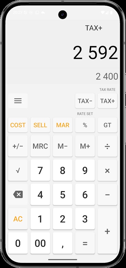 Расчет налогов: Выделенные кнопки TAX+ и TAX- для мгновенного расчета НДС и других налогов с продаж.