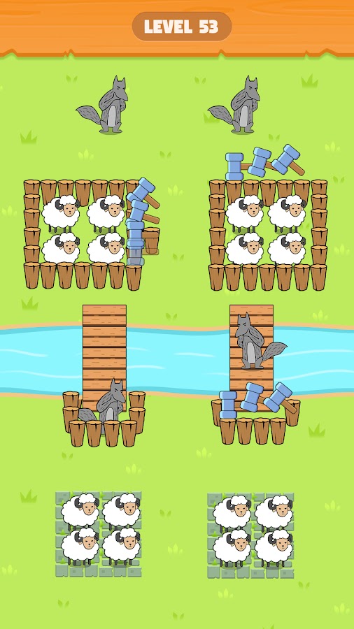 Protect Sheep — это игра-головоломка. Вам нужно играть за пастуха, чтобы спасти свое стадо от множества волков и защитить маленьких ягнят. Щелкните по экрану, чтобы установить деревянные колья на траве, и отделить овец и волков деревянными кольями. На каждом уровне есть определенное количество кольев. После завершения установки нажмите кнопку «Построить», и колья поднимутся из земли. Защитите стадо, если волк не съест овец, он выиграет игру.