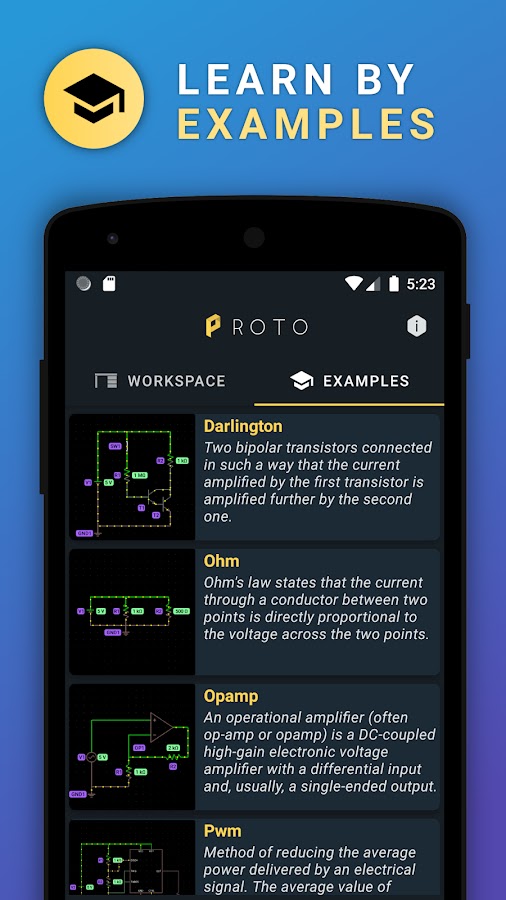 Скачайте приложение PROTO — симулятор схем для Android бесплатно - последняя версия (1.48.0) уже доступна для установки на ваш телефон или планшет.