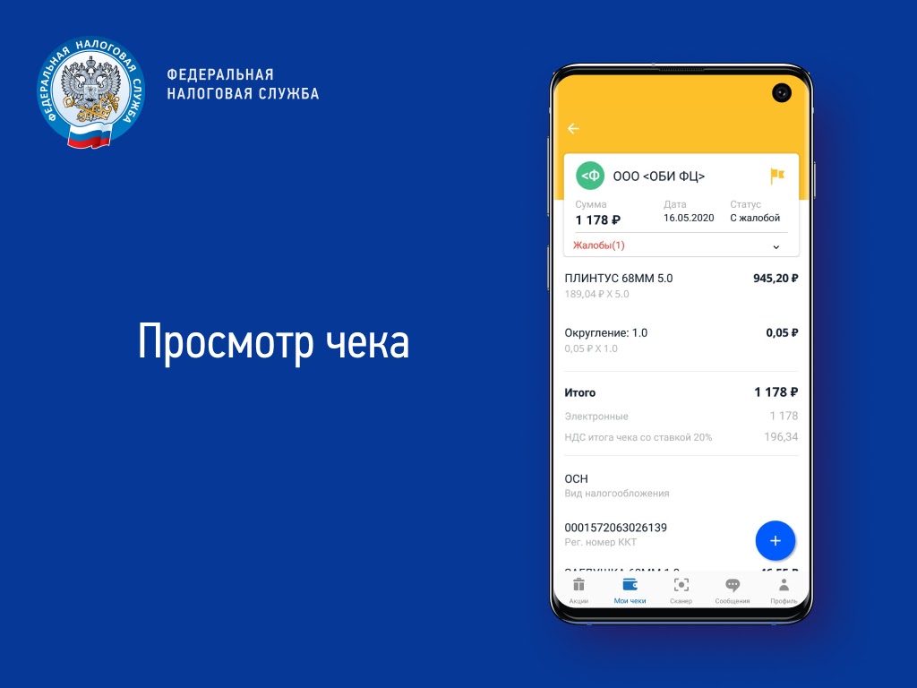 Приложение позволяет проверять легальность чека, получать и хранить кассовые чеки в электронном виде, сообщать о нарушениях и получать бонусы от партнёров.