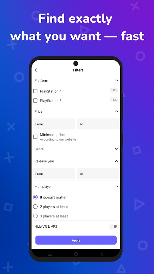 — Расширенный поиск и фильтры – находите предложения PS быстрее благодаря удобным функциям сортировки, недоступным в официальном магазине PlayStation Store.