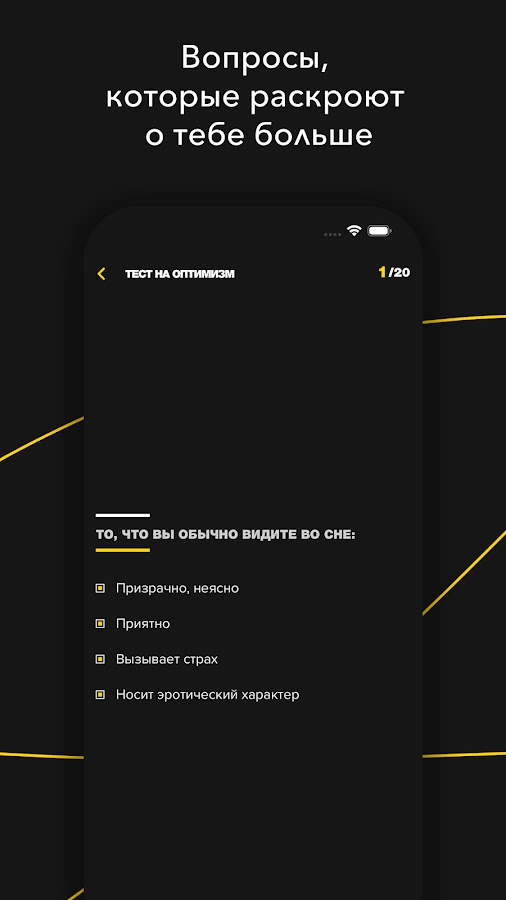 Это приложение – больше, чем просто развлечение. Это инструмент психологической самооценки, который поможет вам развить эмоциональный интеллект, лучше понять отношения и раскрыть скрытые черты. Хотите ли вы серьёзного самоанализа или лёгкого теста – всегда найдётся вариант под ваше настроение.