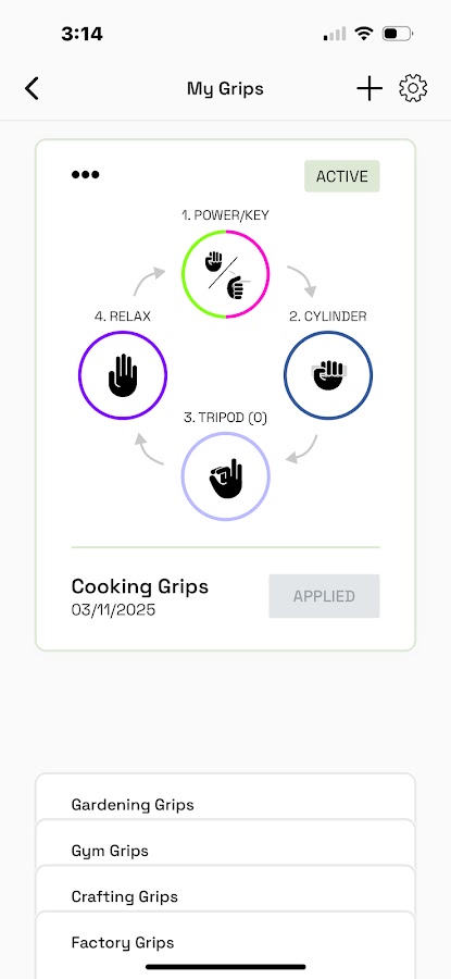 Это телефонное приложение может подключаться к PSYONIC Ability Hand через Bluetooth. С помощью приложения пользователь может выбрать систему управления вводом, настроить параметры электродов прямого управления, настроить систему измерения давления, настроить пользовательские ручки, а также обновить прошивку руки по беспроводной сети.