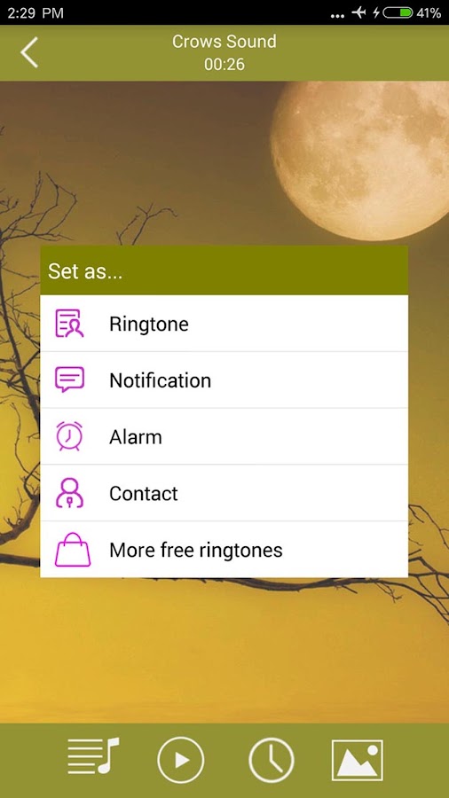 Вы можете установить звуки птиц в качестве мелодий телефона, сигналов будильника, SMS-сообщений или рингтонов для контакта.