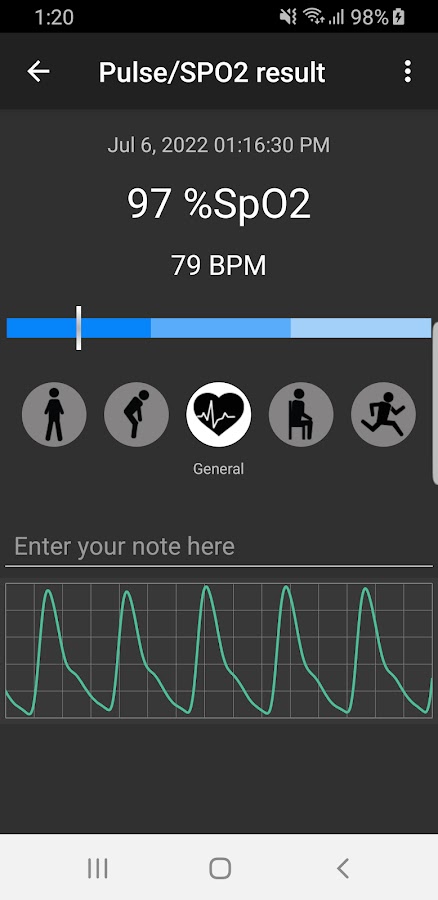 — Калибровка результата SPO2: выберите вариант Настройки -> Калибровка -> «Альтернатива» или другой вариант, если вы видите результат выше / ниже ожидаемого, вы также можете одновременно сравнить его с другими устройствами (одно слева , по одному на правой руке, каждый палец с одним устройством). Вы можете попробовать метод «задержать дыхание», чтобы откалибровать приложение.