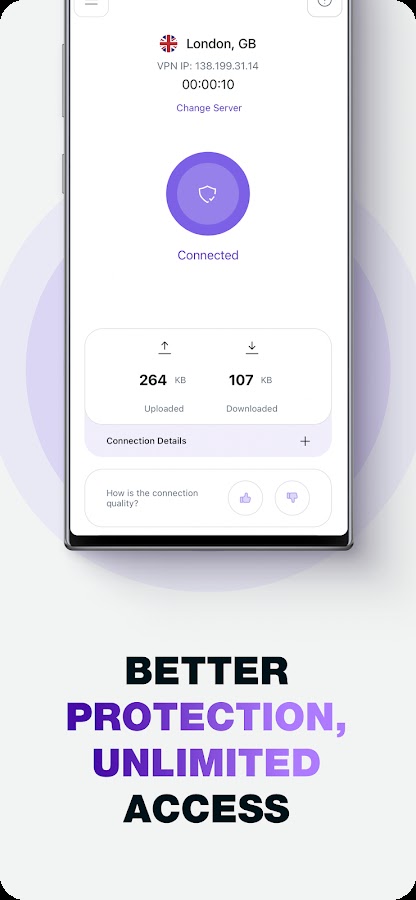 Получите безопасный и анонимный доступ в Интернет с нашим невероятно быстрым VPN для Android всего за несколько нажатий.
