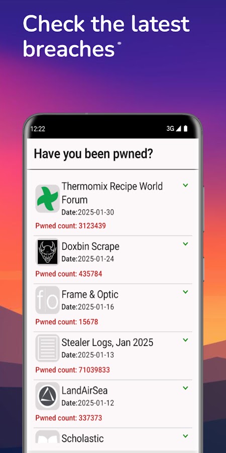 Будьте на шаг впереди утечки данных с Pwnd Email! Наше интуитивно понятное приложение для Android позволяет вам легко защитить свои онлайн-аккаунты. Используя известный API Have I Been Pwned, Pwnd Email предлагает три основные функции: