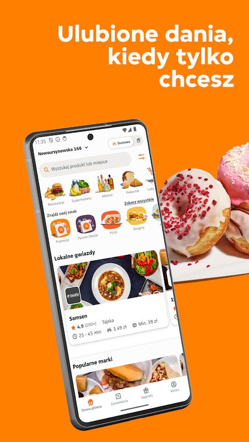 Голодный? Закажите еду с доставкой в ваш дом и офис на Pyszne.pl! Благодаря бесплатному приложению Pyszne.pl вы можете заказать свою любимую пиццу, кебаб, суши и другие блюда с доставкой через 2 минуты! Все, что вам нужно сделать, это указать свой адрес доставки, выбрать ресторан в вашем районе и блюдо, которое вам нравится. Ваша любимая пицца, кебаб, гамбургер или суши находятся на вашем пути!