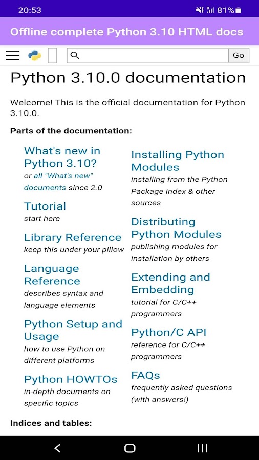 Скачайте приложение Python 3.10.0 docs для Android бесплатно - последняя версия (1.5) уже доступна для установки на ваш телефон или планшет.