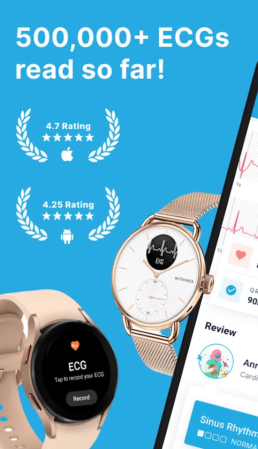 • Анализатор ЭКГ для всех часов и устройств: Samsung ECG, Fitbit ECG, Kardia ECG, Wellue ECG, Withings ECG, холтеровские мониторы и многое другое.