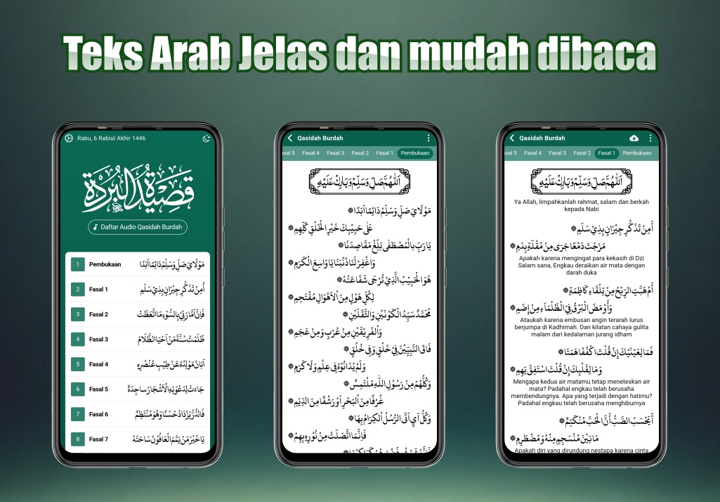 Qasidah Burdah — это приложение, которое содержит чтение восхваляющих стихов Пророка Мухаммада, снабженное аудио и многоязычным переводом. Это приложение можно запустить в автономном режиме.