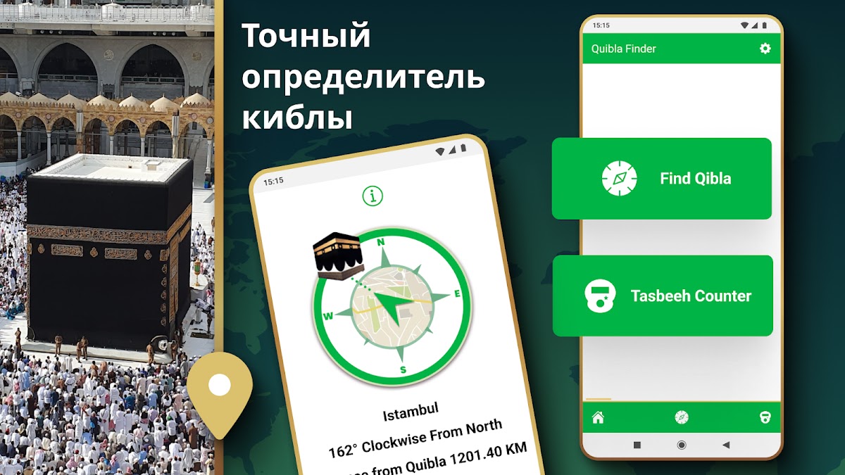 Точный и быстрый компас Киблы, показывает 100% точное направление Киблы по всему миру!