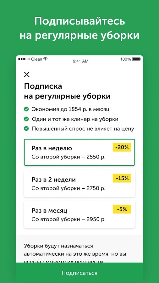 Подпишитесь на порядок в доме — выберите график уборок один раз и вам не нужно будет оформлять заказ каждый раз. А уборки дома теперь будут стоить дешевле.
