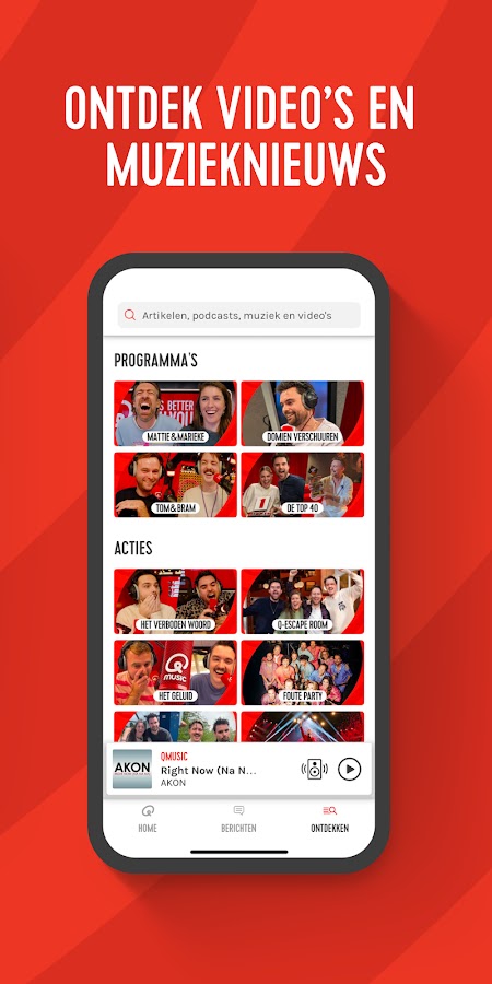 Слушайте и смотрите радио в прямом эфире где угодно и когда угодно! Слушайте без перерыва лучшие хиты на Qmusic или на одном из тематических каналов с помощью приложения Qmusic. Пропустили момент или номер? С приложением Qmusic вы можете увидеть каждый проигранный трек в плейлисте и просмотреть лучшие фрагменты.