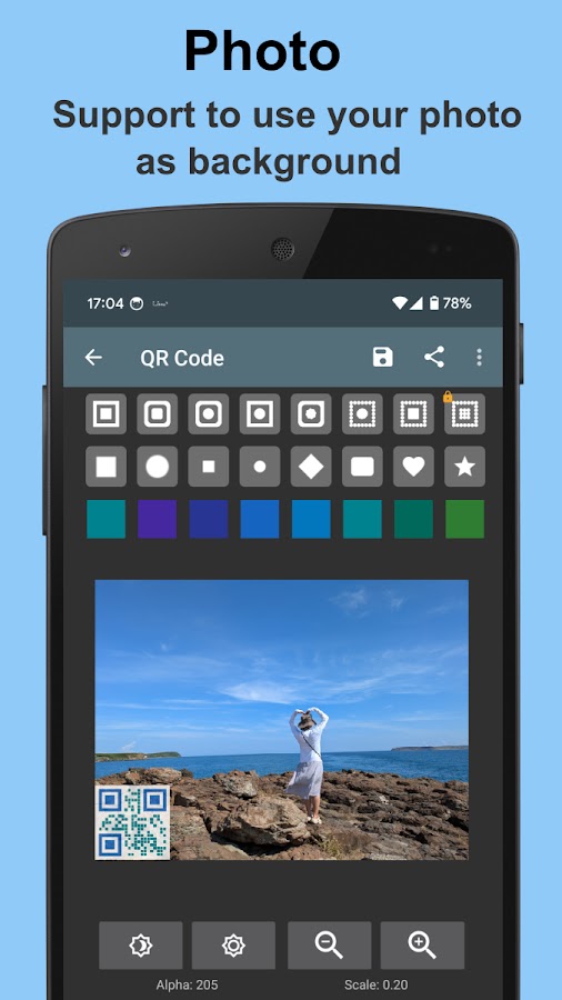 e. В фоновом режиме, переместите изображение QR-код в соответствующее положение