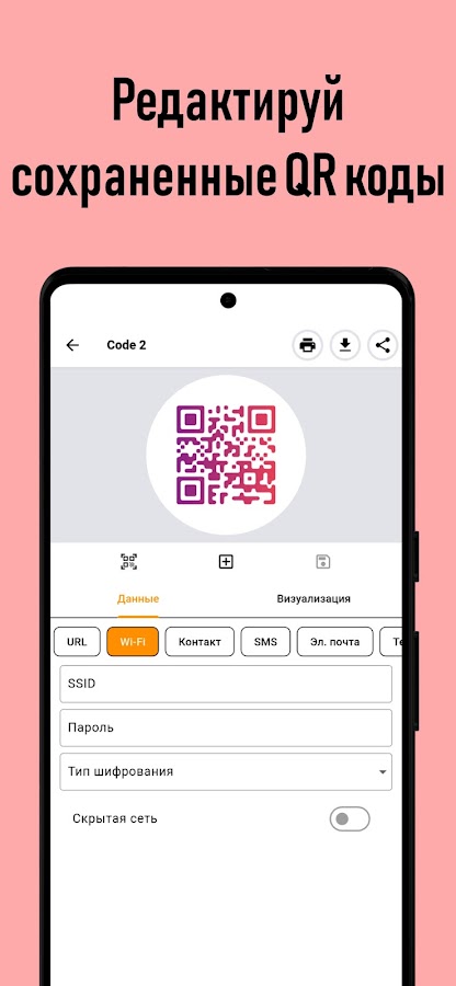 Генератор QR кодов — это универсальный инструмент, который делает процесс создания, редактирования и считывания QR простым, быстрым и даже творческим. Нужно ли вам визитка создать qr, wifi qr-код, qr code бесплатно или qr-код для Instagram — это приложение обеспечит всё, что нужно.