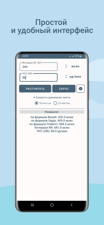Описание ЭКГ — калькулятор QTc
