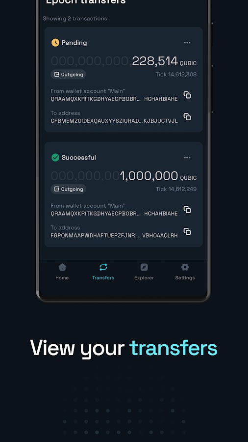 • Легко отправляйте и получайте ресурсы Qubic.