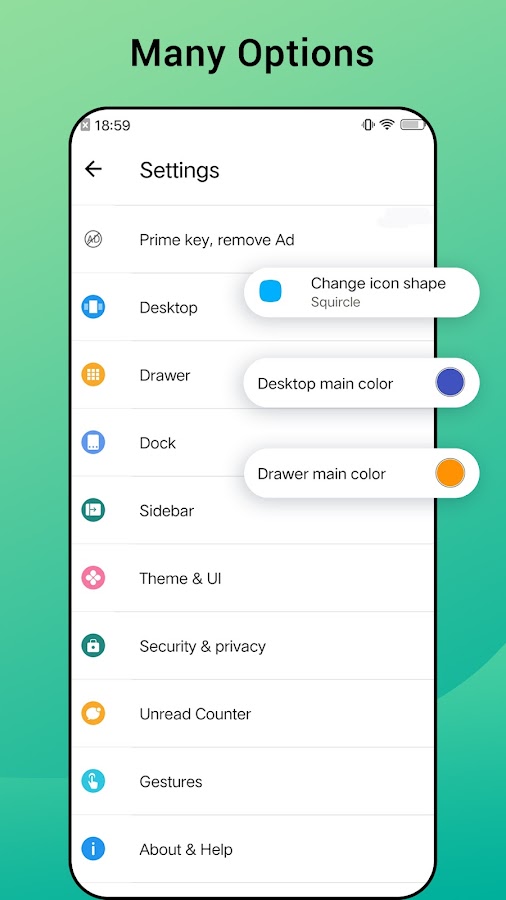 — Более 2000 бесплатных тем для лаунчера и полная поддержка почти всех сторонних наборов значков, настраиваемых через Quick Launcher для Android 16