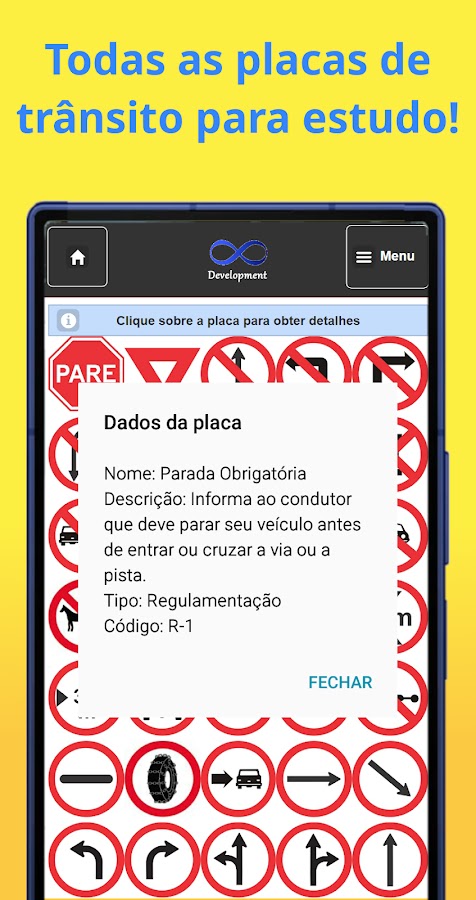 Описание Quiz CNH — Placas de Trânsito