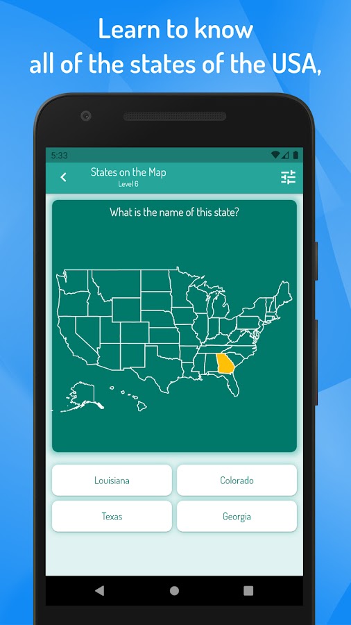 Скачайте приложение Викторина США — Штаты и города для Android бесплатно - последняя версия (2.20.2) уже доступна для установки на ваш телефон или планшет.