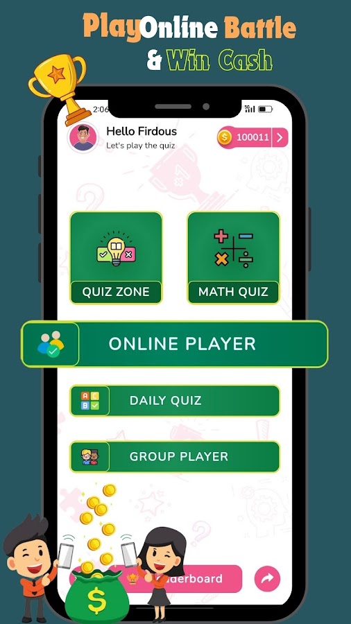 👥 Групповая битва: вы можете зарабатывать деньги, играя в викторины с друзьями и семьей в групповой битве.