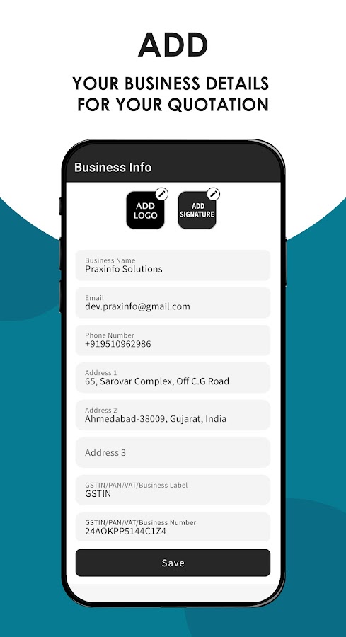 Quotation Maker — идеальное мобильное приложение для владельцев малого бизнеса, подрядчиков и продавцов, которым нужно простое и профессиональное решение для составления смет, счетов-фактур, квитанций, счетов и коммерческих предложений. С помощью этого приложения вы можете легко создавать и делиться счетами, квитанциями, счетами и расценками на своем телефоне. Вы также можете управлять своими платежными операциями, находясь в пути, что позволит вам быстрее получать оплату. Отправляйте счета, квитанции, счета, оценки или расценки своим клиентам с помощью этого приложения.