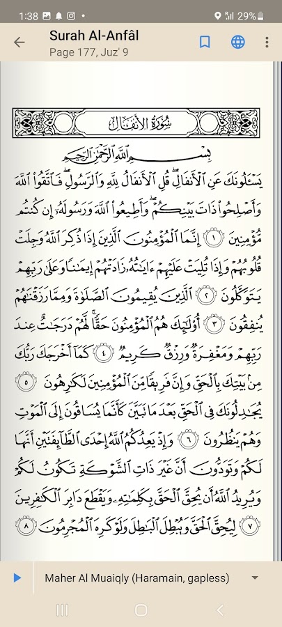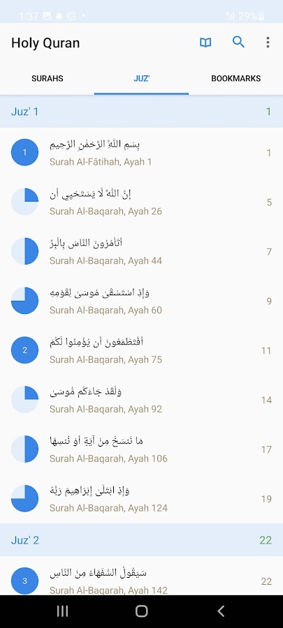 • Возможность выбора и просматривать Коран забора или части