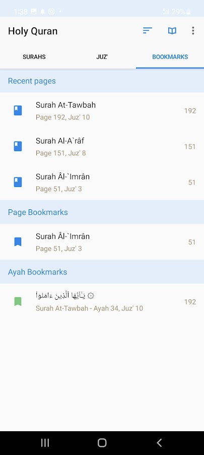 • переход к стиху или суры вы хотите просмотреть