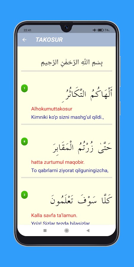 Скачайте приложение Qur’ondan Kichik Suralar для Android бесплатно - последняя версия (1.2.2) уже доступна для установки на ваш телефон или планшет.