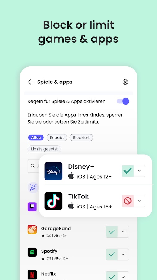 ✓ Фильтруйте контент (блокируйте игры, веб-сайты, порно, азартные игры)