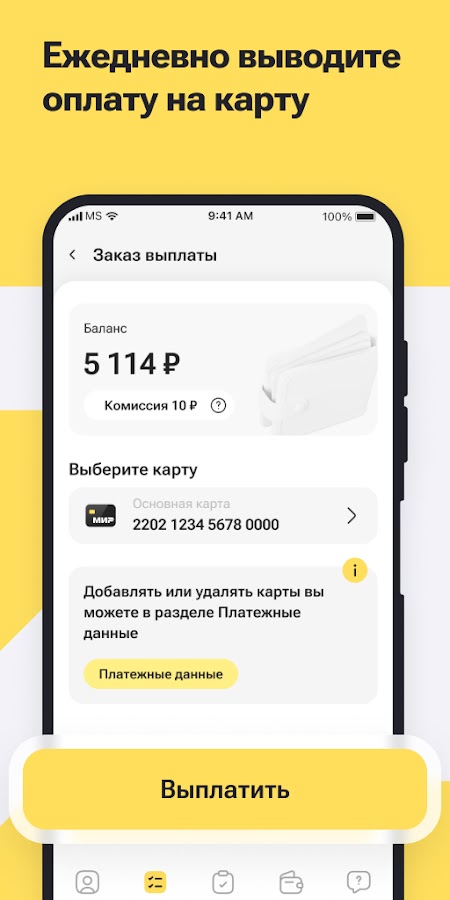 Выплаты в нашем сервисе ежедневные, Вы сможете выводить деньги, сразу после окончания смены на карту.