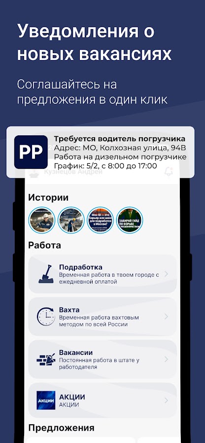 Каждого исполнителя рабочей специальности ждет идеальное трудоустройство в России и карьера с приложением «Рабочие Руки»: поиск работы бесплатно, подходящие вакансии, работа и подработка с ежедневной оплатой. Искать работу вместе с нами — это просто!