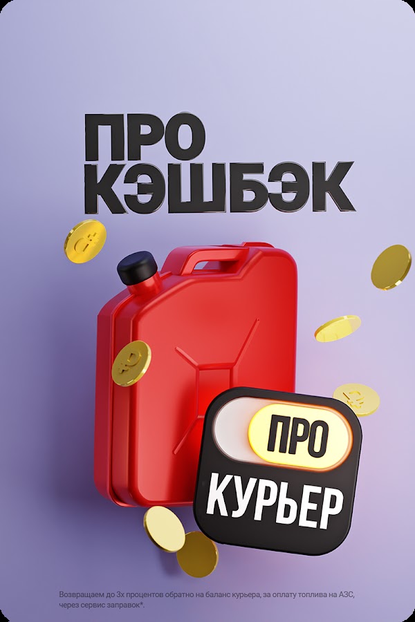 Возвращаем до 3х процентов обратно на баланс курьера, за оплату топлива на АЗС, через приложение в сервисе заправок*.