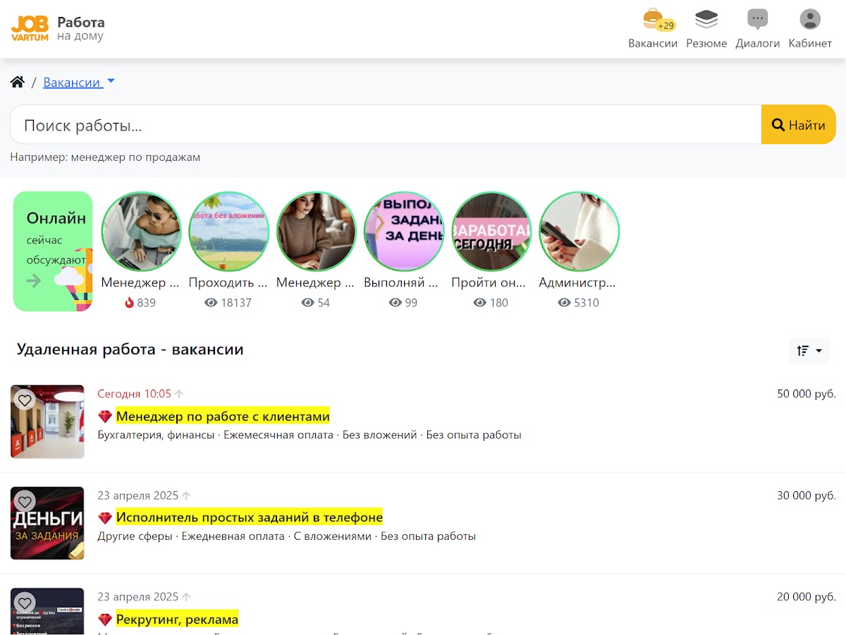 Обратите внимание, что вакансии типа «Наборщик текста», «Сборка ручек» как правило являются обманом. Будьте бдительны при выборе вакансий с вложениями. Не переводите деньги на счета чужих людей за сомнительные материалы или обещания.