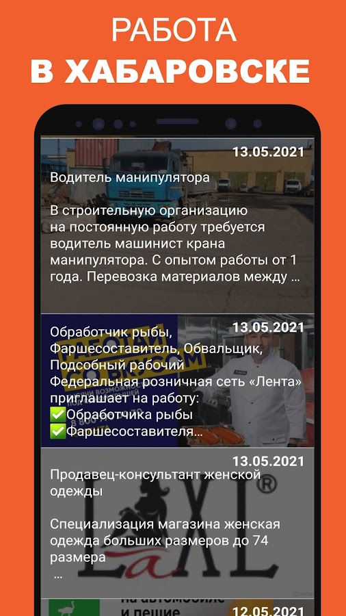 При помощи нашего приложения легко найти именно ту вакансию в Хабаровске, которая более всего подходит именно вам. Мы предлагаем на выбор трудоустройство для женщин и для мужчин, с опытом и без опыта работы. Есть варианты с ежедневной оплатой по итогам дня, с проживанием на территории работодателя.