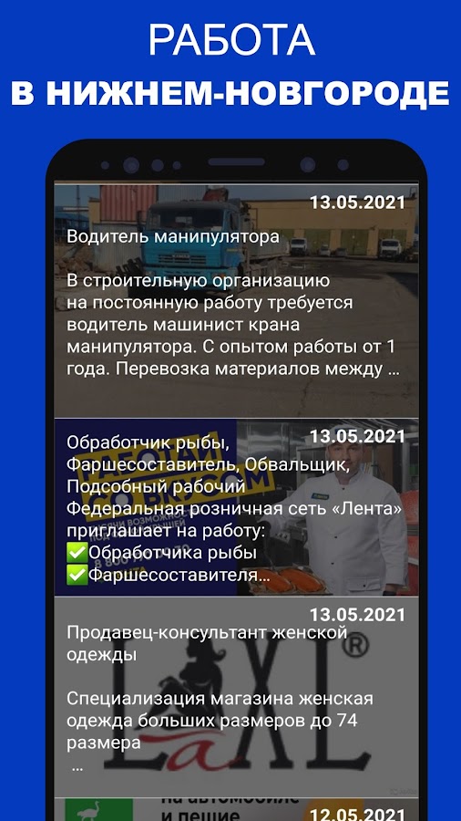 При помощи нашего приложения легко найти именно ту вакансию в Н. Новгороде, которая более всего подходит именно вам. Мы предлагаем на выбор трудоустройство для женщин и для мужчин, с опытом и без опыта работы. Есть варианты с ежедневной оплатой по итогам дня, с проживанием на территории работодателя.