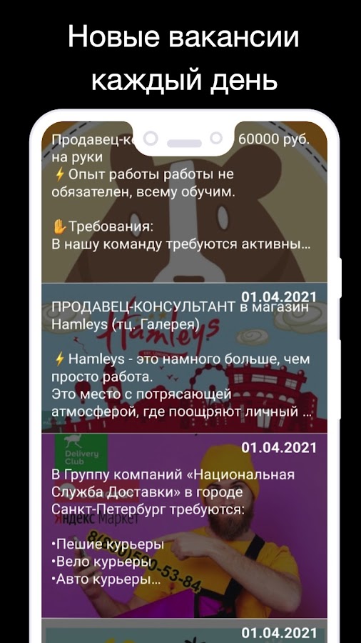 При помощи нашего приложения легко найти именно ту вакансию в Питере, которая более всего подходит именно вам. Мы предлагаем на выбор трудоустройство для женщин и для мужчин, с опытом и без опыта работы. Есть варианты с ежедневной оплатой по итогам дня, с проживанием на территории работодателя.