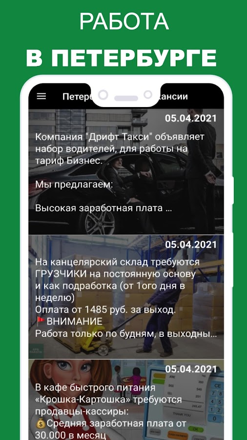 Работа в СПБ – приложение для поиска работы для граждан России, а также граждан СНГ и других государств. При нестабильной ситуации на рынке труда мы предлагаем вам самые популярные и свежие профессии, список которых постоянно обновляется: работа водителем, охранником вахтой или курьером от прямых работодателей.